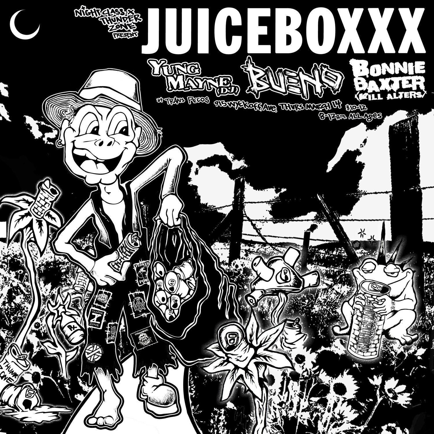 Mike is sought after for his artwork by a wide range of musicians and has illustrated his own album covers, posters, fliers and social media posts.